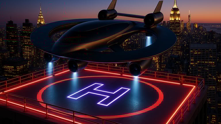 A two-seat, fully electric VTOL vehicle designed for safe, quiet, and clean neighborhood operations.Industrial Logistics: ShiptoSky™ – “From Port to Person, in Hours”